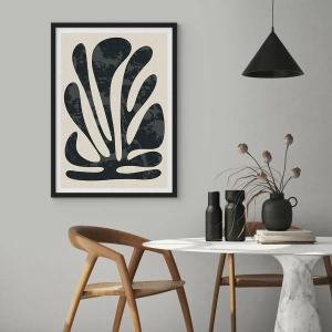 Poster in einem schwarzem Rahmen - Abstrakte schwarze Pflanzenform auf beigem Hintergrund - 50x70cm - Vielfingrige Abstraktion - Moderne Wanddekoration für Wohnzimmer und Schlafzimmer ARTTOR