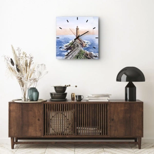 Wanduhr - Glasuhr - Ein Leuchtturm an einer felsigen Küste - 30x30cm - Dem Meer zugewandt - Moderne Wanddekoration für Wohnzimmer und Schlafzimmer ARTTOR