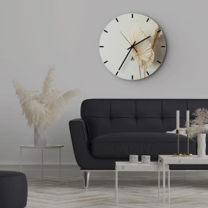 Wanduhr „When you need solace“ – Getrocknete Palmblätter auf beigem Hintergrund im Boho-Stil