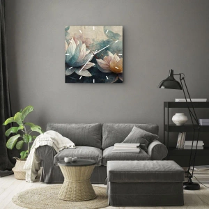 • Blumen, Art Deco, Lotus, Botanik, Blumen, Stillleben, Pastell, Kunst, Für das Büro, für das Arbeitszimmer, für das Esszimmer, für den Flur, für das Wohnzimmer, für das Schlafzimmer, Blau Rosa, Runden