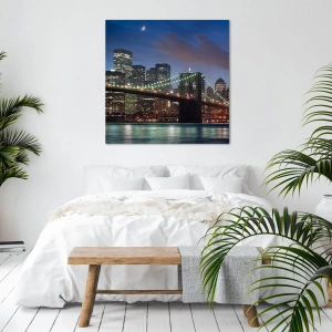 New York Bridge bei Nacht mit beleuchteten Gebäuden ist ein Gemälde, das elegante Innenräume perfekt ergänzt und eine Atmosphäre von Großstadtstil und Modernität schafft. Es ist die perfekte Wahl für alle, die urbane Landschaften und zeitloses Design schätzen.