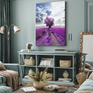Die Leinwand wird über den Rahmen gespannt. Die Seiten und Kanten werden gedruckt, um das Bild fortzusetzen. Das Bild ist fertig zum Aufhängen an der Wand. Jedes Produkt hat einen am Rahmen befestigten Anhänger und ein Montageset (Schraube + Stift).