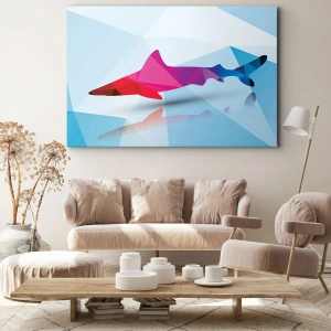 Bild auf Leinwand - Leinwandbild - Geometrische Hai-Silhouette in Rosa- und Blautönen - 100x70cm - Ein Hai in einem Kristallraum - Moderne Wanddekoration für Wohnzimmer und Schlafzimmer ARTTOR