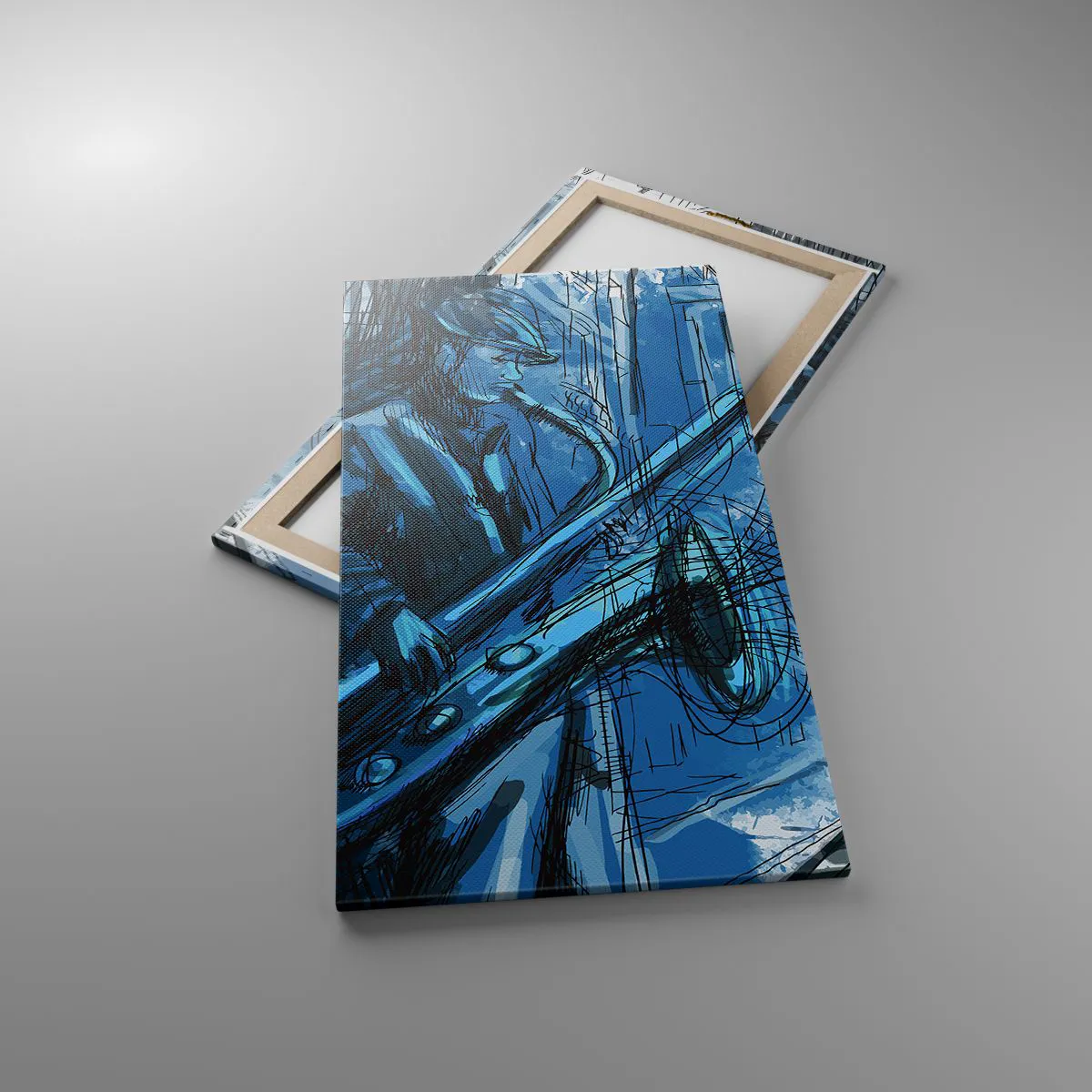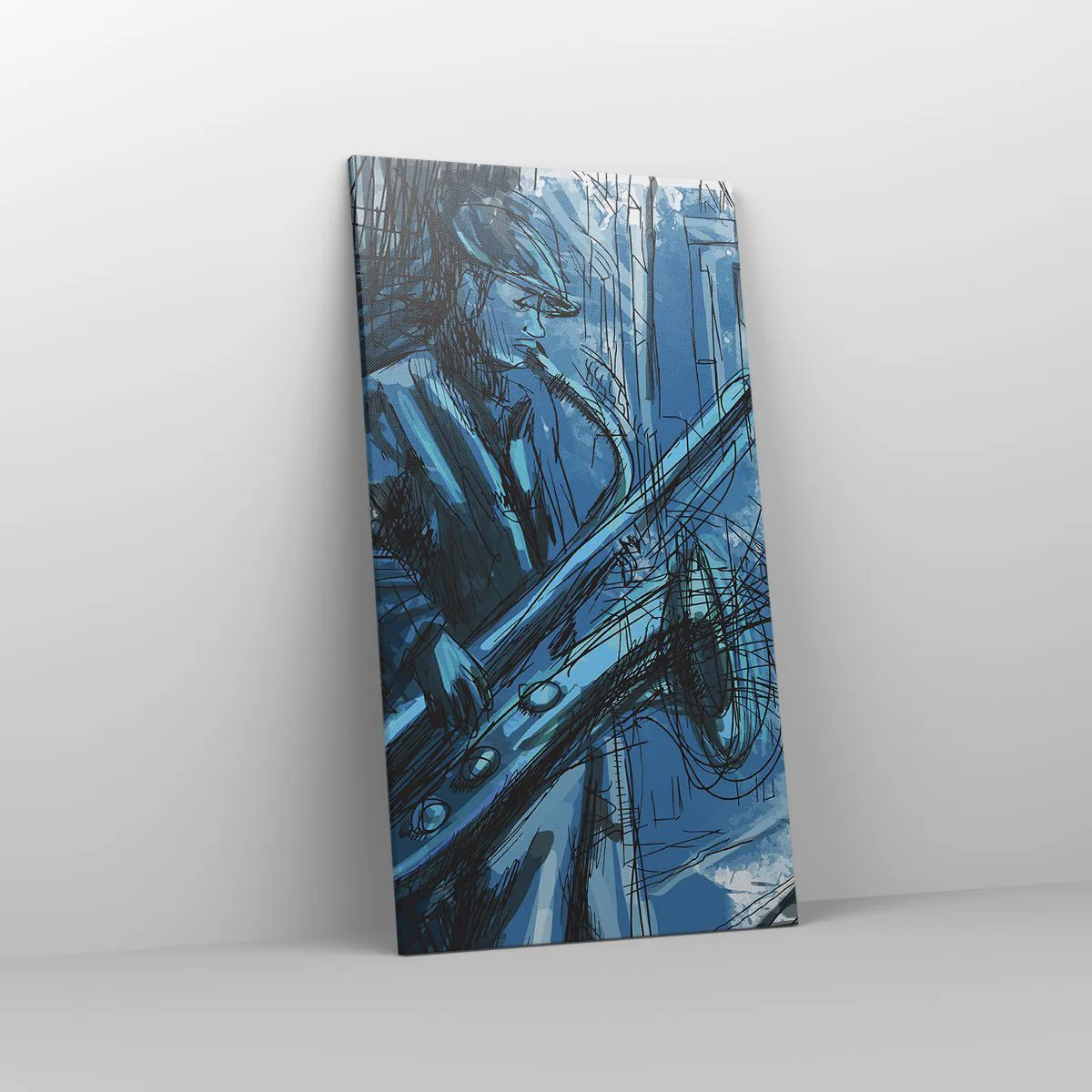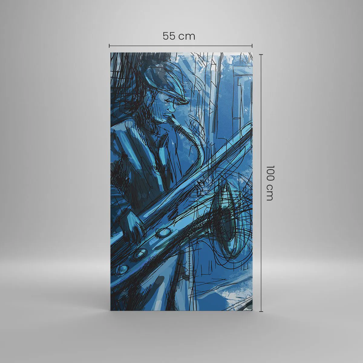 • Saxophon, Jazz, Musik, Menschen, Musik, Vintage und Retro, Für das Büro, für das Arbeitszimmer, für das Esszimmer, für den Flur, für das Wohnzimmer, für das Schlafzimmer, Blau grau, Vertikal