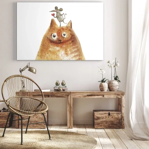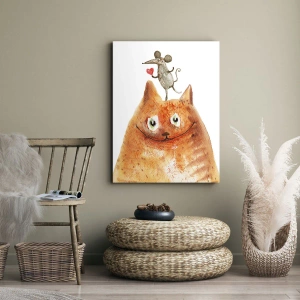 • Für Kinder, Maus, Katze, Für Kinder, Tiere, Für das Kinderzimmer Weiß, Orange, Quadrat