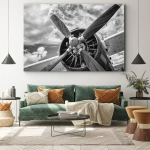 Dieses Bild ist die perfekte Wahl für alle, die Wert auf Eleganz und Minimalismus in der Dekoration legen. Ein Flugzeugpropeller vor einem Wolkenhintergrund bringt einen Hauch von Nostalgie ins Interieur und verleiht ihm gleichzeitig einen modernen Charakter. Das Wandbild „Eroberer der Lüfte“ eignet sich perfekt für Wohnzimmer, Arbeitszimmer oder Büroräume und unterstreicht deren individuellen Stil.