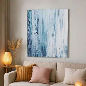 Bild auf Leinwand - Leinwandbild - Abstrakte blaue und weiße Streifen ähneln Eiszapfen - 160x50cm - Blaue Eiszapfen - Moderne Wanddekoration für Wohnzimmer und Schlafzimmer ARTTOR