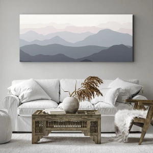 Bild auf Leinwand - Leinwandbild - Dezente Bergschichten in Grau- und Blautönen - 120x50cm - Wellen der Berge - Moderne Wanddekoration für Wohnzimmer und Schlafzimmer ARTTOR