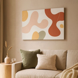 Die Leinwand wird über den Rahmen gespannt. Die Seiten und Kanten werden gedruckt, um das Bild fortzusetzen. Das Bild ist fertig zum Aufhängen an der Wand. Jedes Produkt hat einen am Rahmen befestigten Anhänger und ein Montageset (Schraube + Stift).