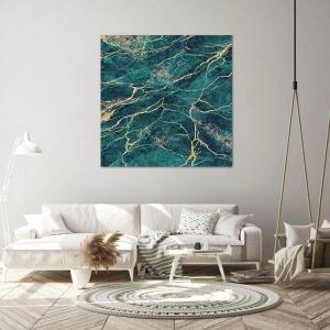 Bild auf Leinwand - Leinwandbild - Strukturiertes Marmormuster in Türkis- und Goldtönen - 100x70cm - Goldmine - Moderne Wanddekoration für Wohnzimmer und Schlafzimmer ARTTOR
