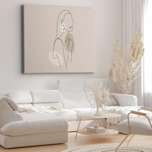 Bild auf Leinwand - Leinwandbild - Minimalistische Illustration einer Frau mit Umrissen auf beigem Hintergrund - 120x80cm - Mädchenhafte Ikone - Moderne Wanddekoration für Wohnzimmer und Schlafzimmer ARTTOR
