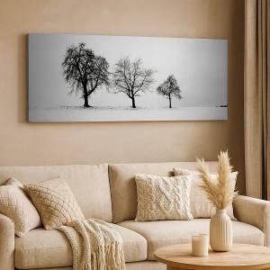 Die Leinwand wird über den Rahmen gespannt. Die Seiten und Kanten werden gedruckt, um das Bild fortzusetzen. Das Bild ist fertig zum Aufhängen an der Wand. Jedes Produkt hat einen am Rahmen befestigten Anhänger und ein Montageset (Schraube + Stift).