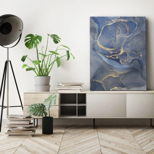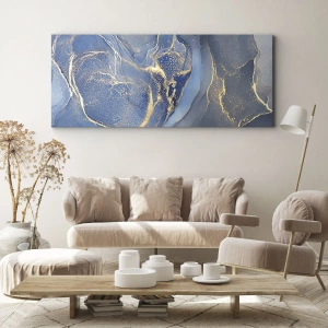 Bild auf Leinwand - Leinwandbild - Abstrakte blaue Muster mit goldenen Akzenten - 140x50cm - Goldstaub - Moderne Wanddekoration für Wohnzimmer und Schlafzimmer ARTTOR
