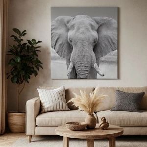 Bild auf Leinwand - Leinwandbild - Porträt eines Elefanten in Schwarz und Weiß - 120x80cm - Willkommen in meiner Welt - Moderne Wanddekoration für Wohnzimmer und Schlafzimmer ARTTOR