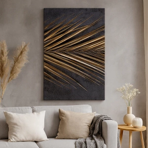 Bild auf Leinwand - Leinwandbild - Goldenes tropisches Blatt auf schwarzem Hintergrund - 100x70cm - Das Gold der Tropen - Moderne Wanddekoration für Wohnzimmer und Schlafzimmer ARTTOR