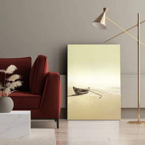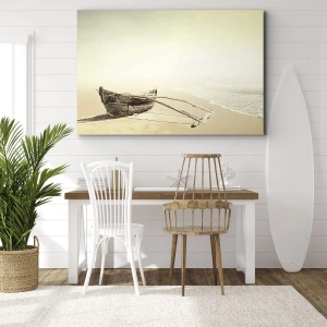 Bild auf Leinwand - Leinwandbild - Altes Fischerboot an einem Sandstrand - 100x70cm - Erinnerung an die Südsee - Moderne Wanddekoration für Wohnzimmer und Schlafzimmer ARTTOR