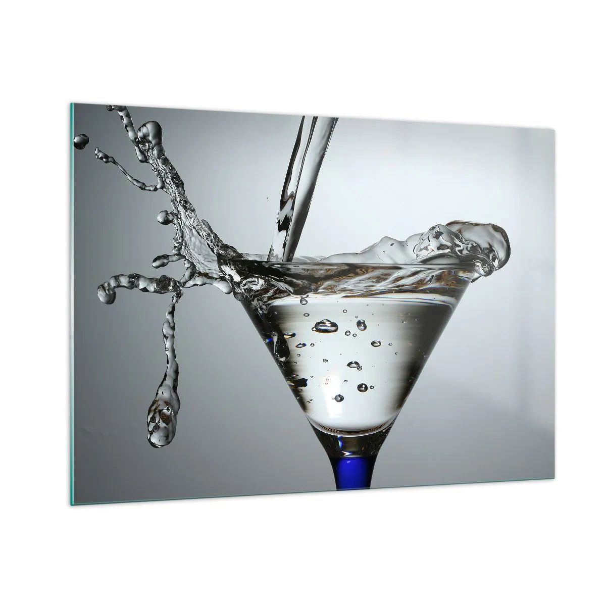 Glasbild - Bild auf glas - Flüssigkeit in einem Martini-Glas spritzt vor grauem Hintergrund - 100x70cm - Am Rand der Tasse - Moderne Wanddekoration für Wohnzimmer und Schlafzimmer ARTTOR