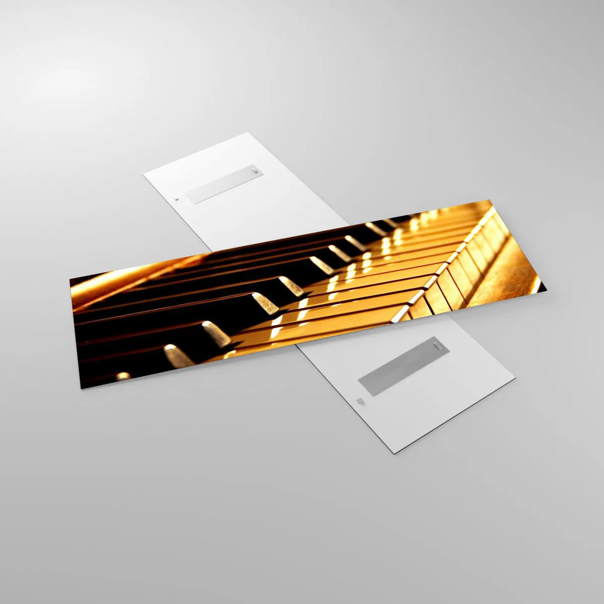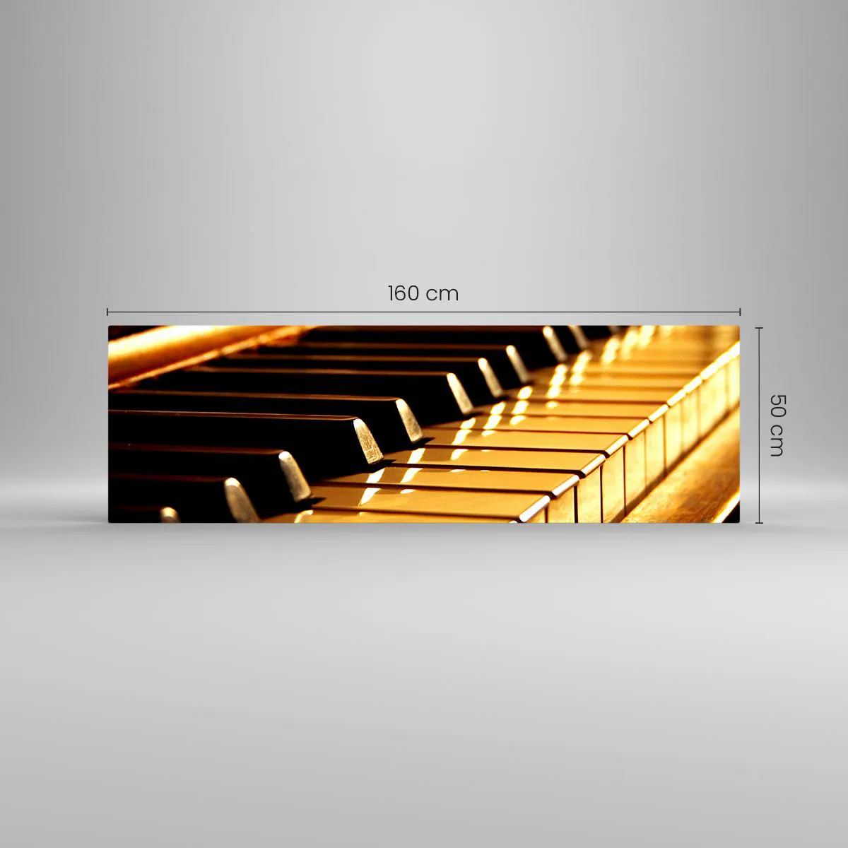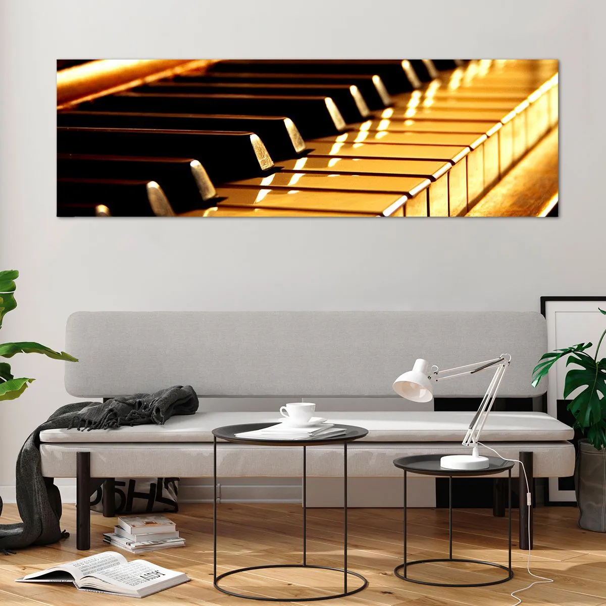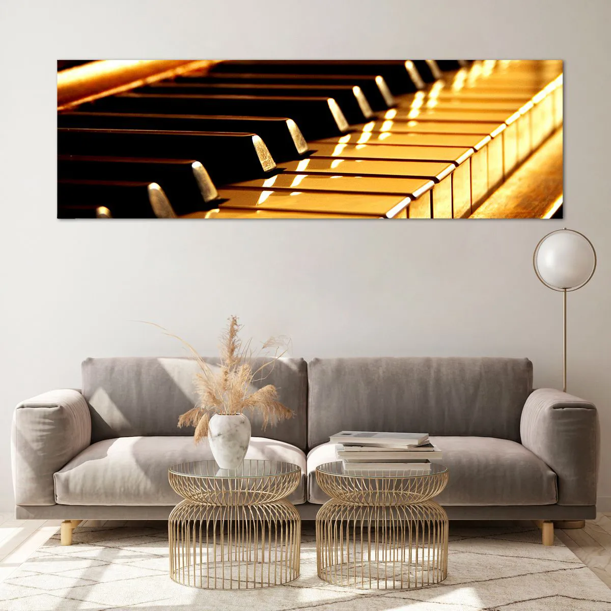 Glasbild - Bild auf glas - Klaviertastatur in goldener Beleuchtung - 160x50cm - Endlose Möglichkeiten - Moderne Wanddekoration für Wohnzimmer und Schlafzimmer ARTTOR