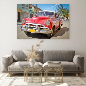 Glasbild - Bild auf glas - Roter Oldtimer auf einer Stadtstraße - 100x70cm - Nur in Kuba - Moderne Wanddekoration für Wohnzimmer und Schlafzimmer ARTTOR