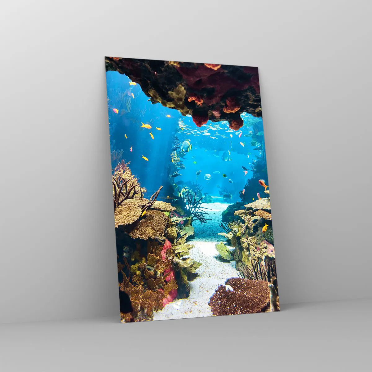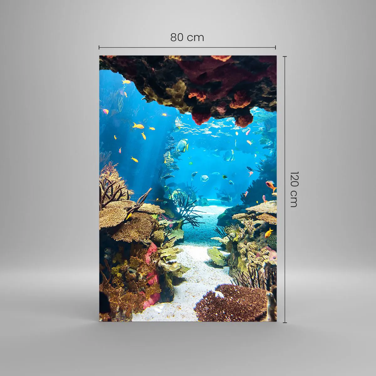 Glasbild - Bild auf glas - Unterwasserwelt mit Korallenriff und Fischen - 80x120cm - Du hast es noch nicht einmal geträumt - Moderne Wanddekoration für Wohnzimmer und Schlafzimmer ARTTOR