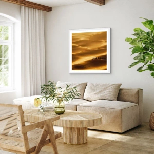 Poster in einem weißen Rahmen - Wohnwagen in den Wüstenwellen - 91x61 cm