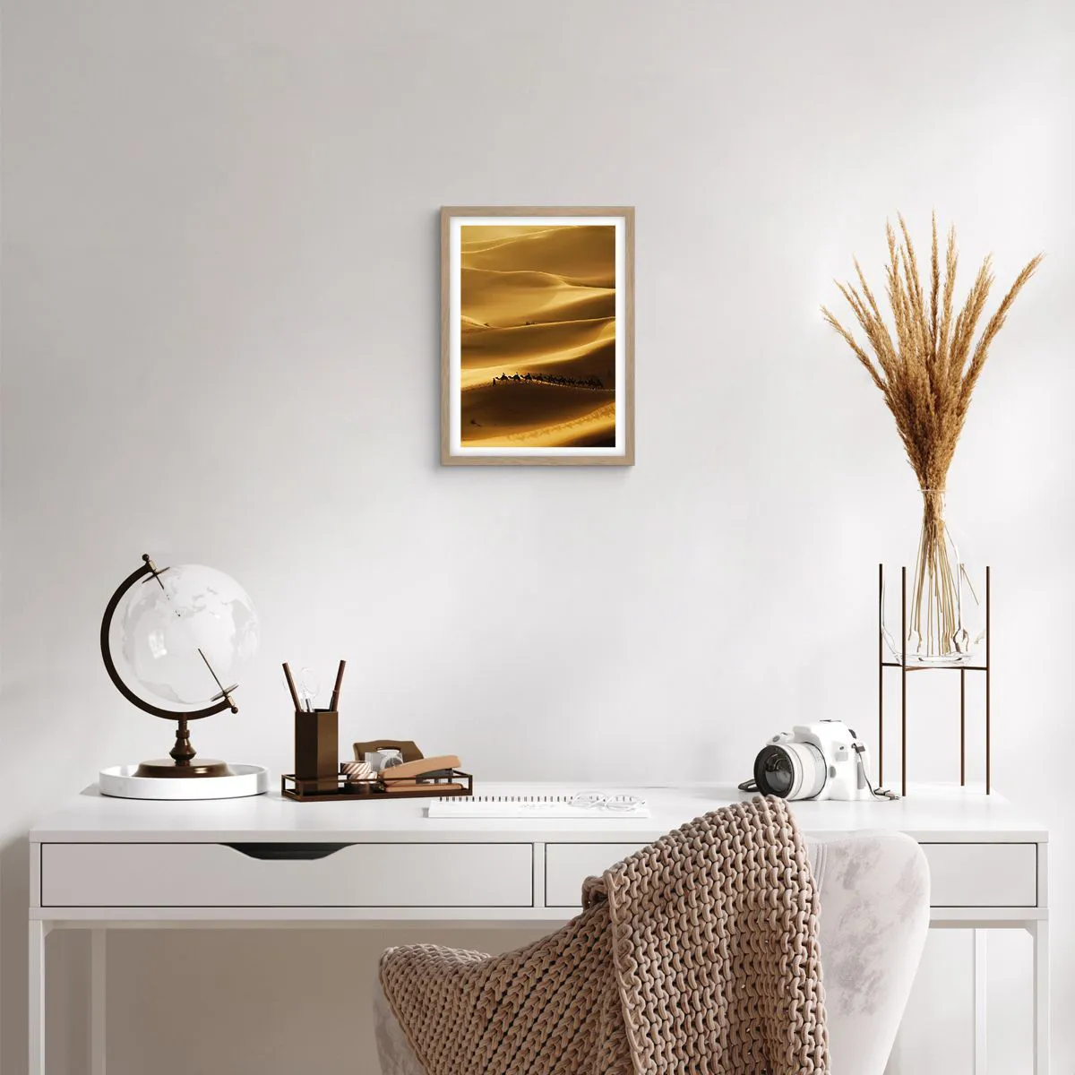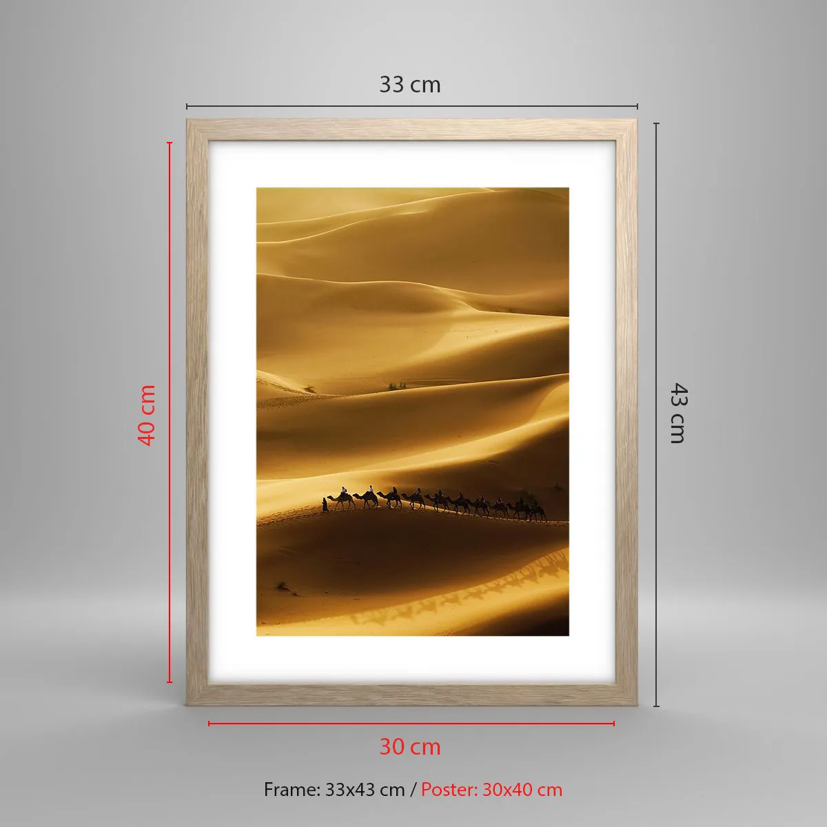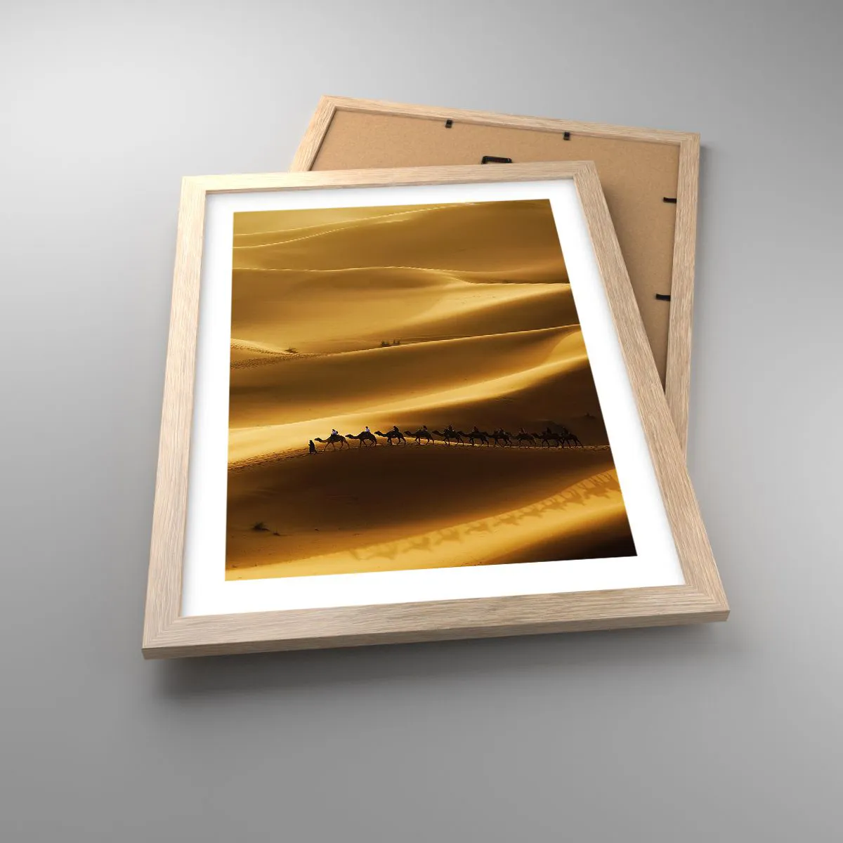 Poster in einem Rahmen aus heller Eiche - Wohnwagen in den Wüstenwellen - 30x40 cm