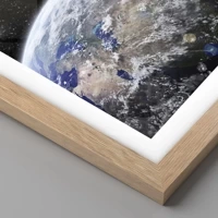 Poster in einem Rahmen aus heller Eiche - Weltraumlandschaft - Sonnenaufgang - 100x70 cm