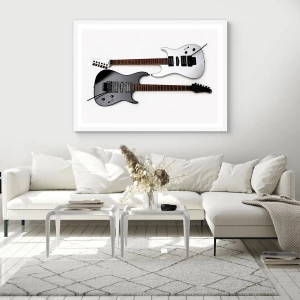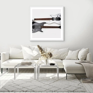 • Musik, E-Gitarre, Musikinstrument, Schwarz und weiß, Musik, Für das Büro, für das Arbeitszimmer, für das Esszimmer, für den Flur, für das Wohnzimmer, für das Schlafzimmer, Weiß, Schwarz, Schwarz und Weiß, Quadrat