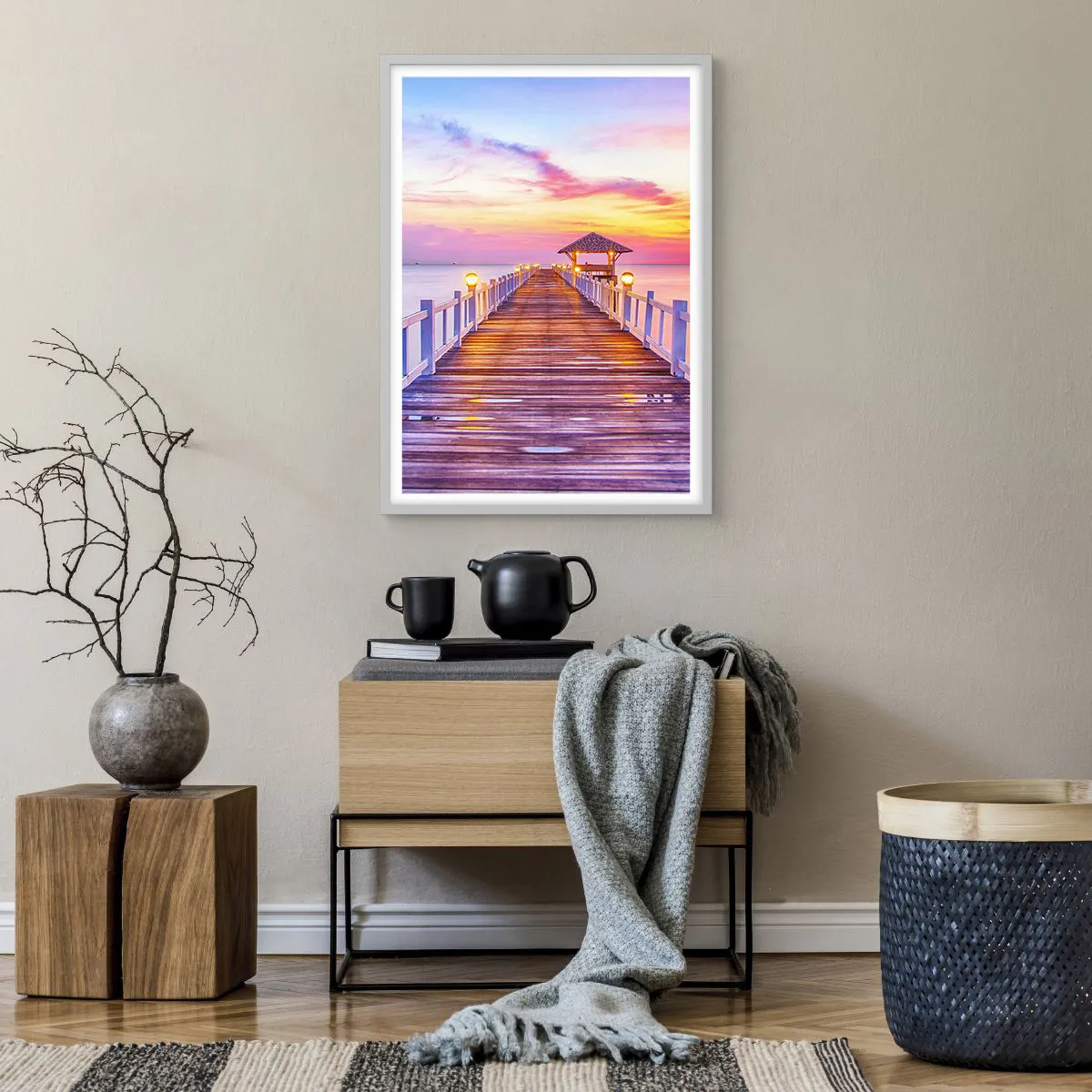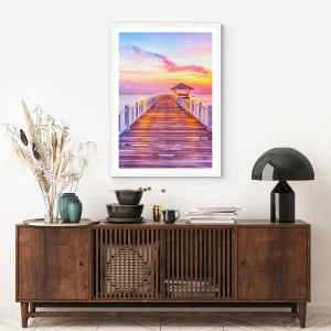 Poster in einem weißen Rahmen - Die lila-goldene Stille des Abends - 50x70 cm