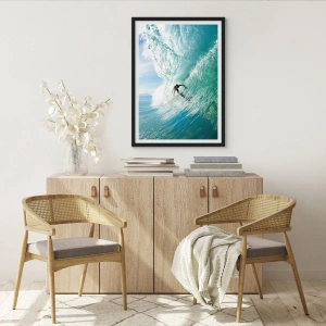 Poster in einem schwarzem Rahmen - Surfer auf einer Welle im Sonnenlicht - 50x70cm - Immer Top - Moderne Wanddekoration für Wohnzimmer und Schlafzimmer ARTTOR