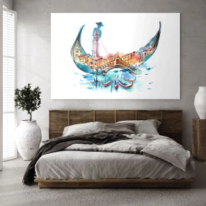 Glasbild - Bild auf glas - Aquarellpanorama von Venedig in Form einer Maske - 50x70cm - Wir segeln durch die Stadt - Moderne Wanddekoration für Wohnzimmer und Schlafzimmer ARTTOR