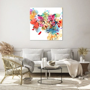 Glasbild - Bild auf glas - Abstraktes Porträt eines Leoparden in intensiven Farben - 80x120cm - Die Schöne und das Biest - Moderne Wanddekoration für Wohnzimmer und Schlafzimmer ARTTOR