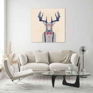 Glasbild - Bild auf glas - Stilisierte Grafik eines Hirsches mit Brille und Fliege - 80x120cm - Eine lustige Extravaganz - Moderne Wanddekoration für Wohnzimmer und Schlafzimmer ARTTOR