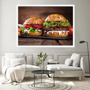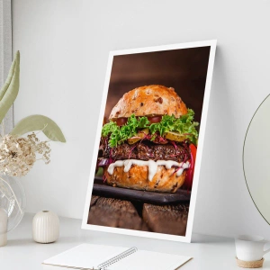 Poster - Appetitlicher Burger mit Gemüse und Sauce - 50x70cm - Amerikanischer Traum - Moderne Wanddekoration für Wohnzimmer und Schlafzimmer ARTTOR