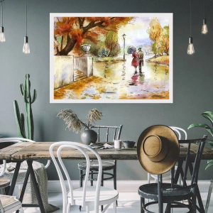 Poster - Ein Spaziergang im Herbstpark mit einem Regenschirm - 100x70cm - Romantischer Herbst im Park - Moderne Wanddekoration für Wohnzimmer und Schlafzimmer ARTTOR