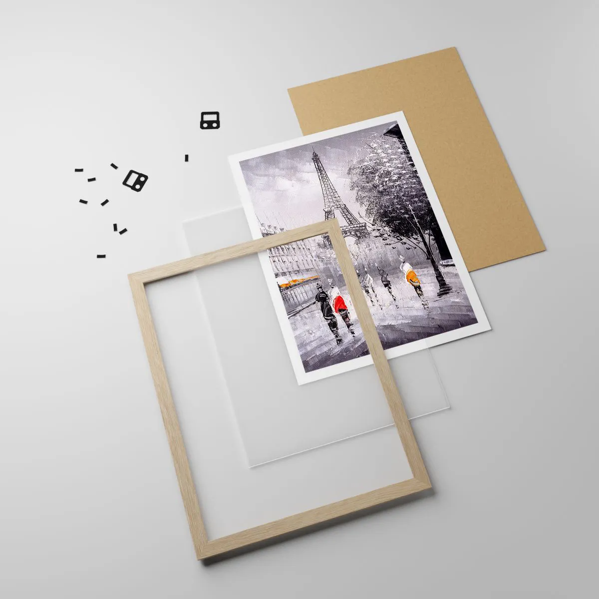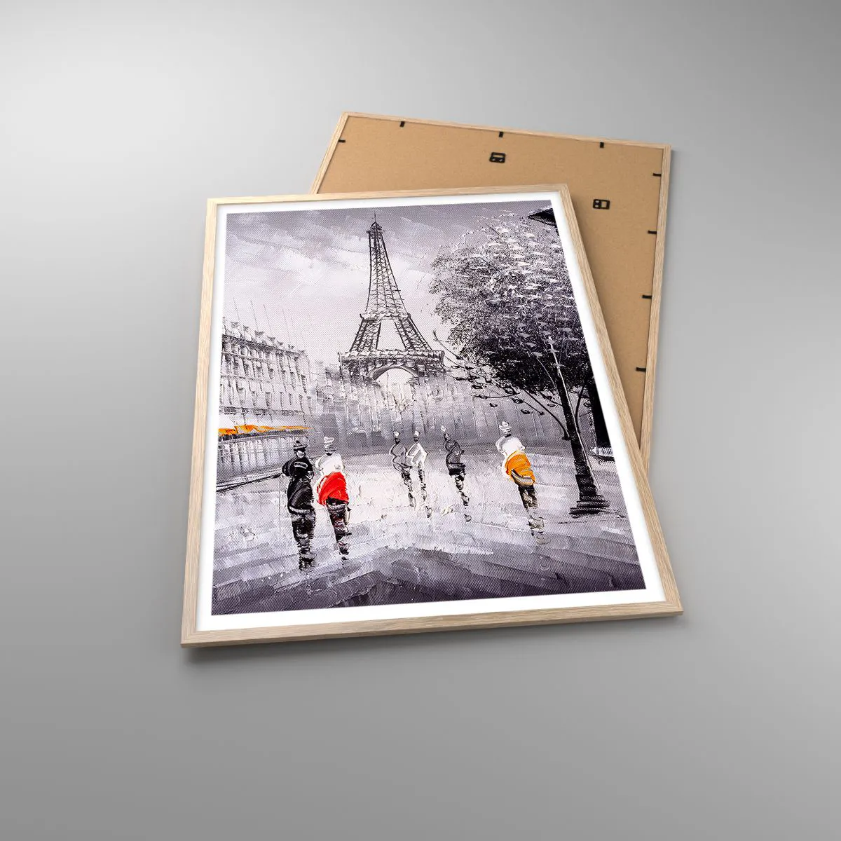 Poster in einem Rahmen aus heller Eiche - Pariser Spaziergang - 70x100 cm