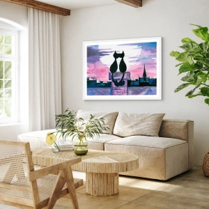 Poster in einem weißen Rahmen - Rendez-vous unter dem Mond - 50x50 cm