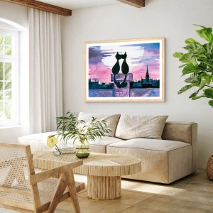 Poster in einem Rahmen aus heller Eiche - Rendez-vous unter dem Mond - 70x100 cm