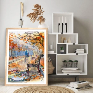 Poster in einem Rahmen aus heller Eiche - Gemeinsam im Herbst wandern - 40x40 cm