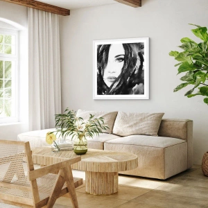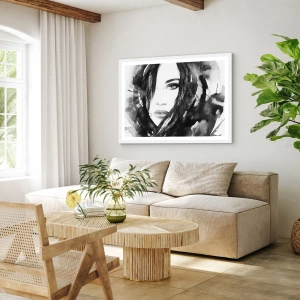Poster in einem weißen Rahmen - Porträt einer Dame in Schwarzweiß - 70x50 cm