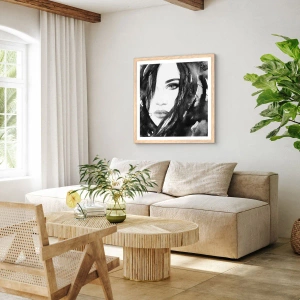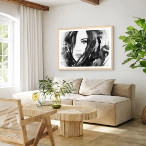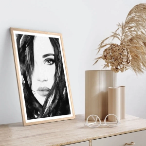 Poster in einem Rahmen aus heller Eiche - Porträt einer Dame in Schwarzweiß - 40x50 cm