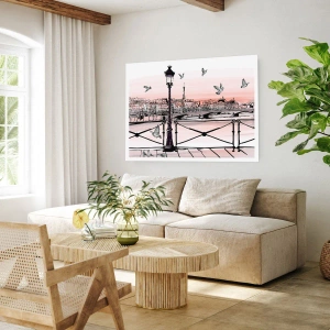 Poster - Pariser Ansicht mit einer Laterne und einer Brücke - 100x70cm - Über den Dächern von Paris - Moderne Wanddekoration für Wohnzimmer und Schlafzimmer ARTTOR