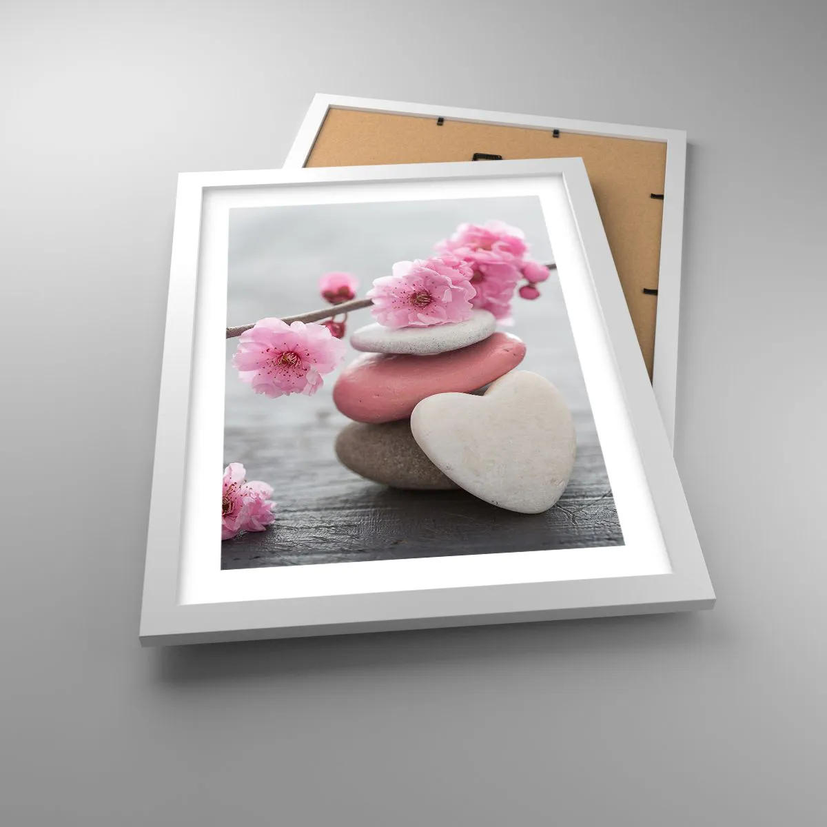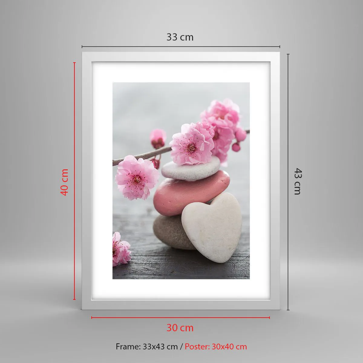 Poster in einem weißen Rahmen - Glückseligkeit mit einer Kirschblüte - 30x40 cm