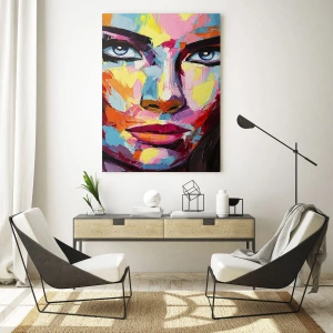 Glasbild - Bild auf glas - Farbenfrohes Porträt einer Frau im abstrakten Stil - 50x70cm - Auch die Seele ist bunt - Moderne Wanddekoration für Wohnzimmer und Schlafzimmer ARTTOR