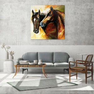 Glasbild - Bild auf glas - Ein Pferdepaar in einer malerischen Komposition - 70x100cm - Doppelt anmutig - Moderne Wanddekoration für Wohnzimmer und Schlafzimmer ARTTOR