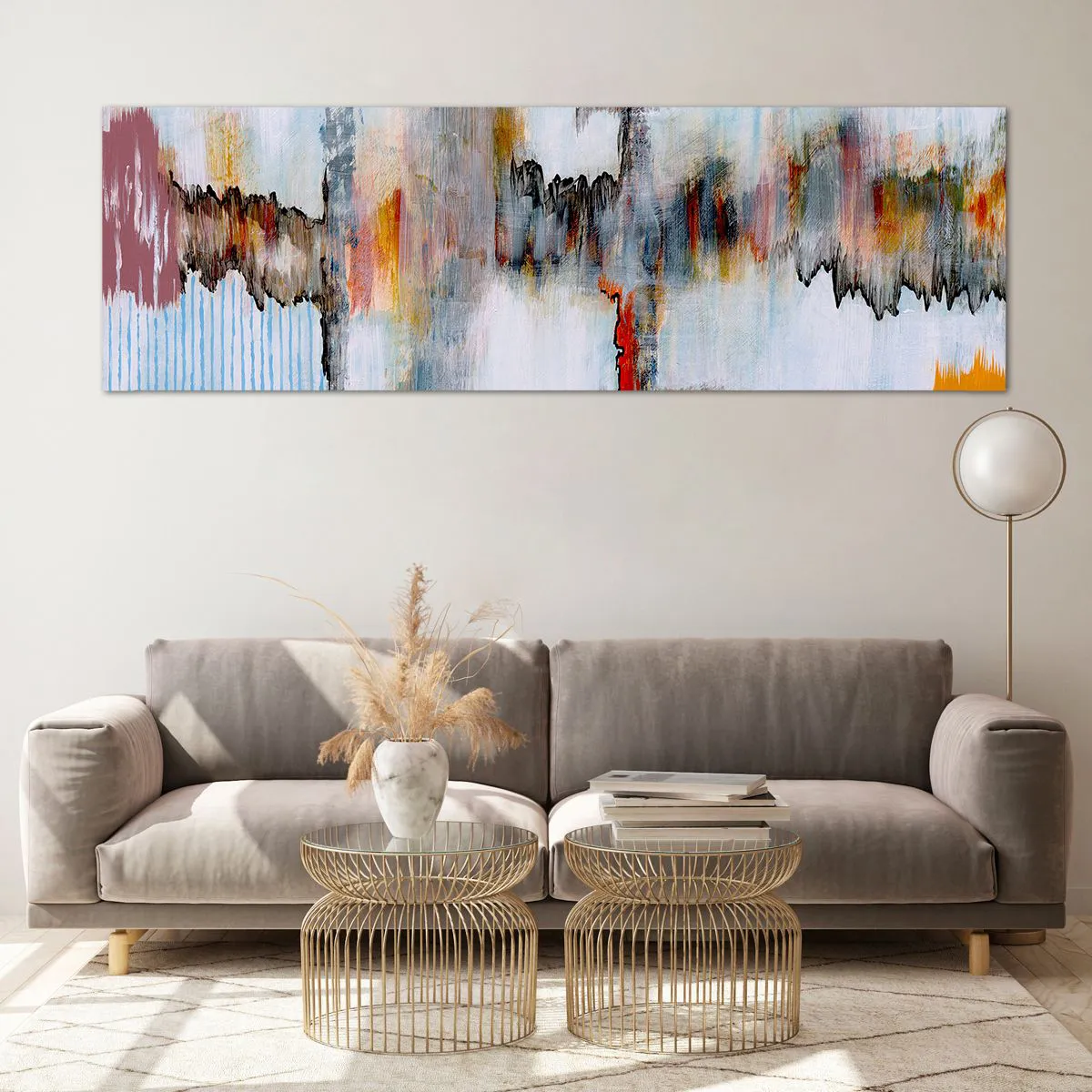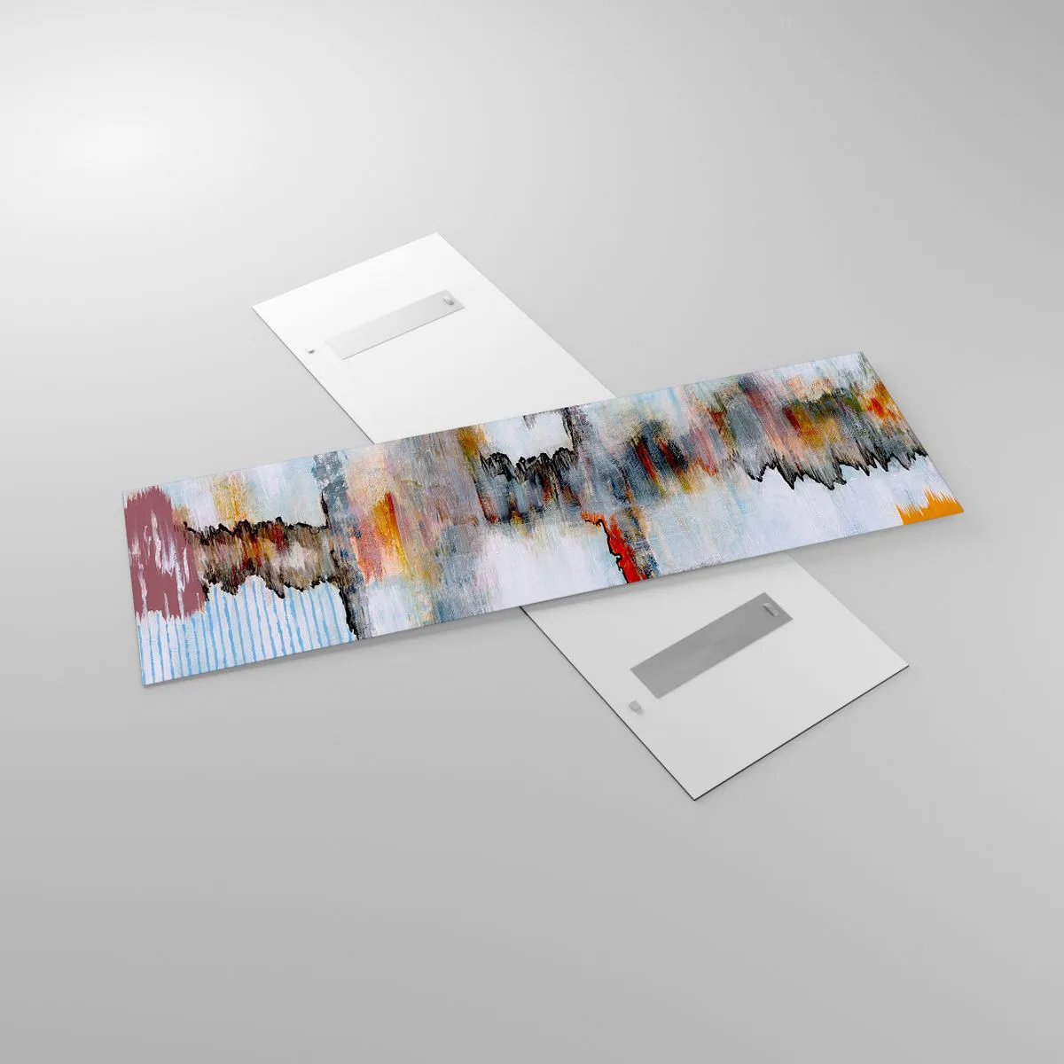 Glasbild - Bild auf glas - Abstraktes Muster mit lebendigen Farben auf hellem Hintergrund - 160x50cm - Ein Stock auf dem Wasser - Moderne Wanddekoration für Wohnzimmer und Schlafzimmer ARTTOR