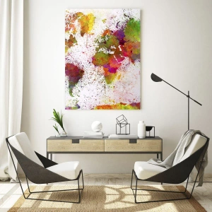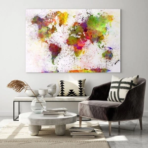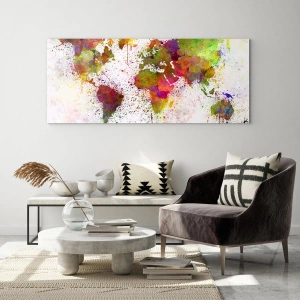 Glasbild - Bild auf glas - Eine farbenfrohe Weltkarte im abstrakten Stil - 70x100cm - Irgendwie ist es gleich geworden - Moderne Wanddekoration für Wohnzimmer und Schlafzimmer ARTTOR