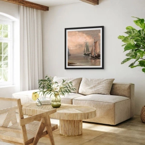 Poster in einem schwarzem Rahmen - Segelboote auf ruhigem Meer in pastellfarbener Umgebung - 100x70cm - Die Rückkehr der Matrosen - Moderne Wanddekoration für Wohnzimmer und Schlafzimmer ARTTOR