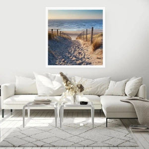 Poster - Das Rauschen des Meeres, der Gesang der Vögel, ein wilder Strand im Gras ... - 70x50 cm