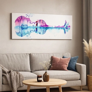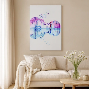 Das Gemälde eignet sich perfekt als Wanddekoration in Räumen, die Wert auf zeitgenössische Kunst und einzigartige Motive legen. Sein ruhiger Charakter und künstlerischer Stil ergänzen Räume wie Wohnzimmer, Büro oder Schlafzimmer perfekt. Es ist auch eine ideale Wahl für Musikliebhaber und alle, die nach außergewöhnlichen Dekorationselementen suchen.